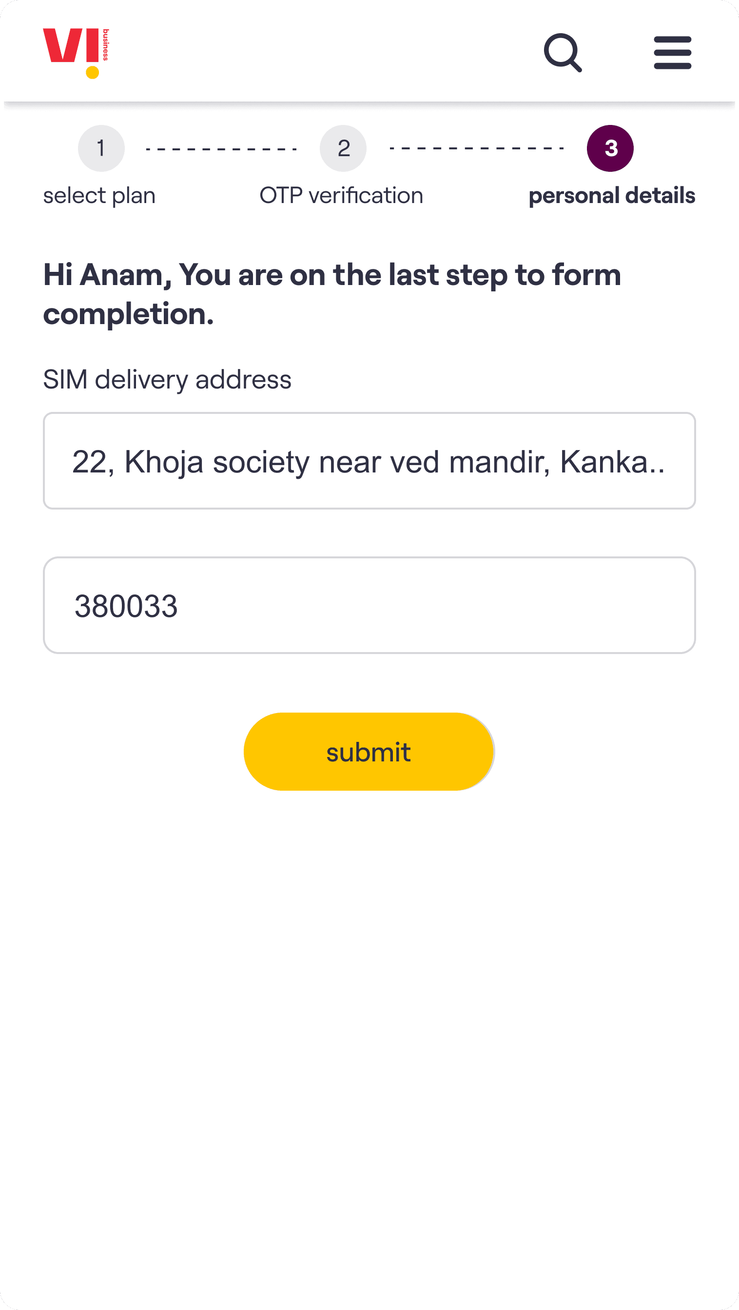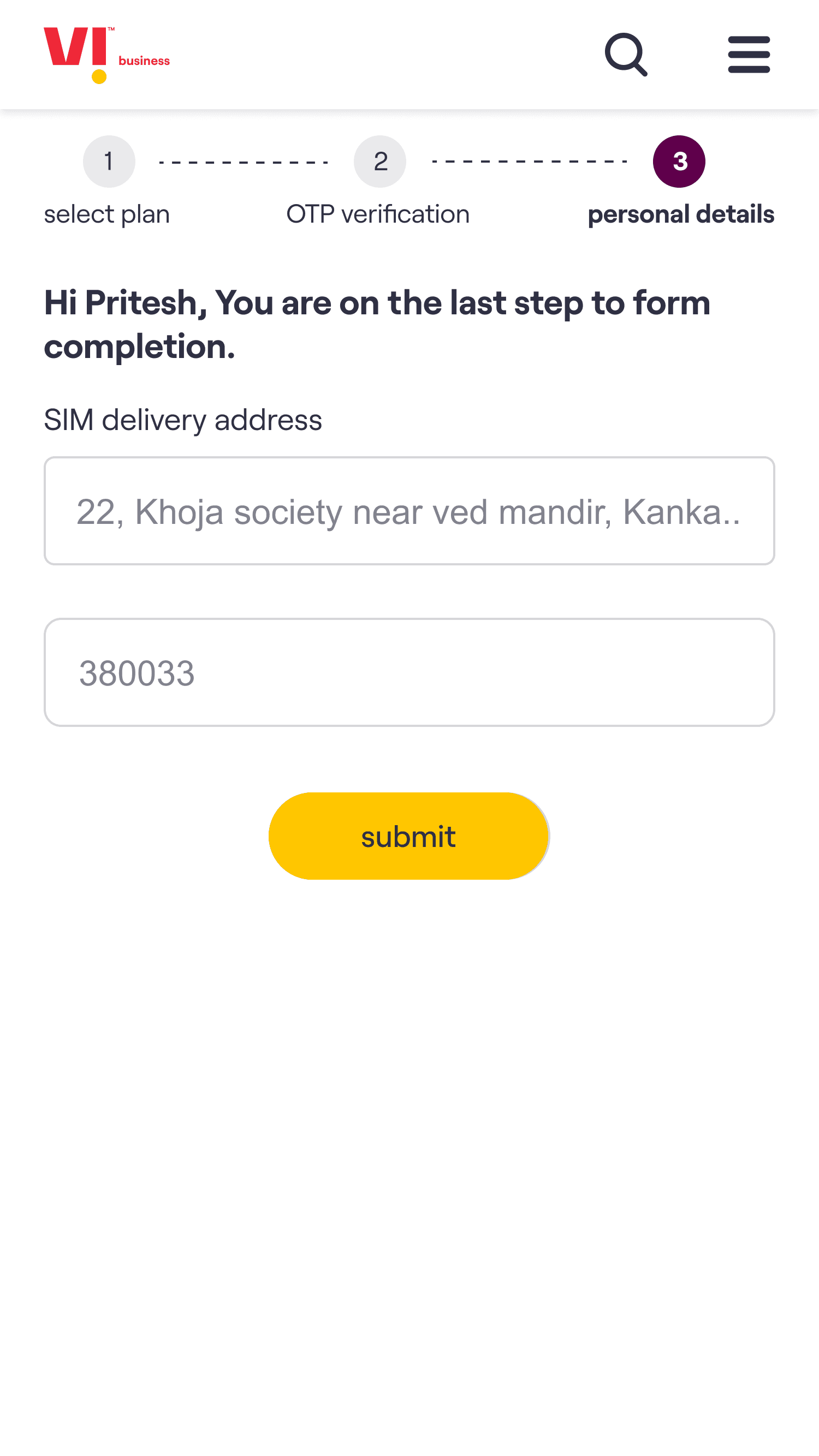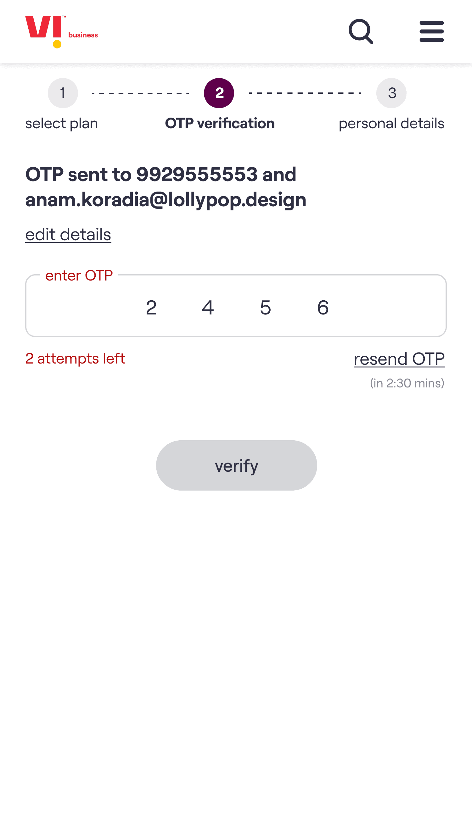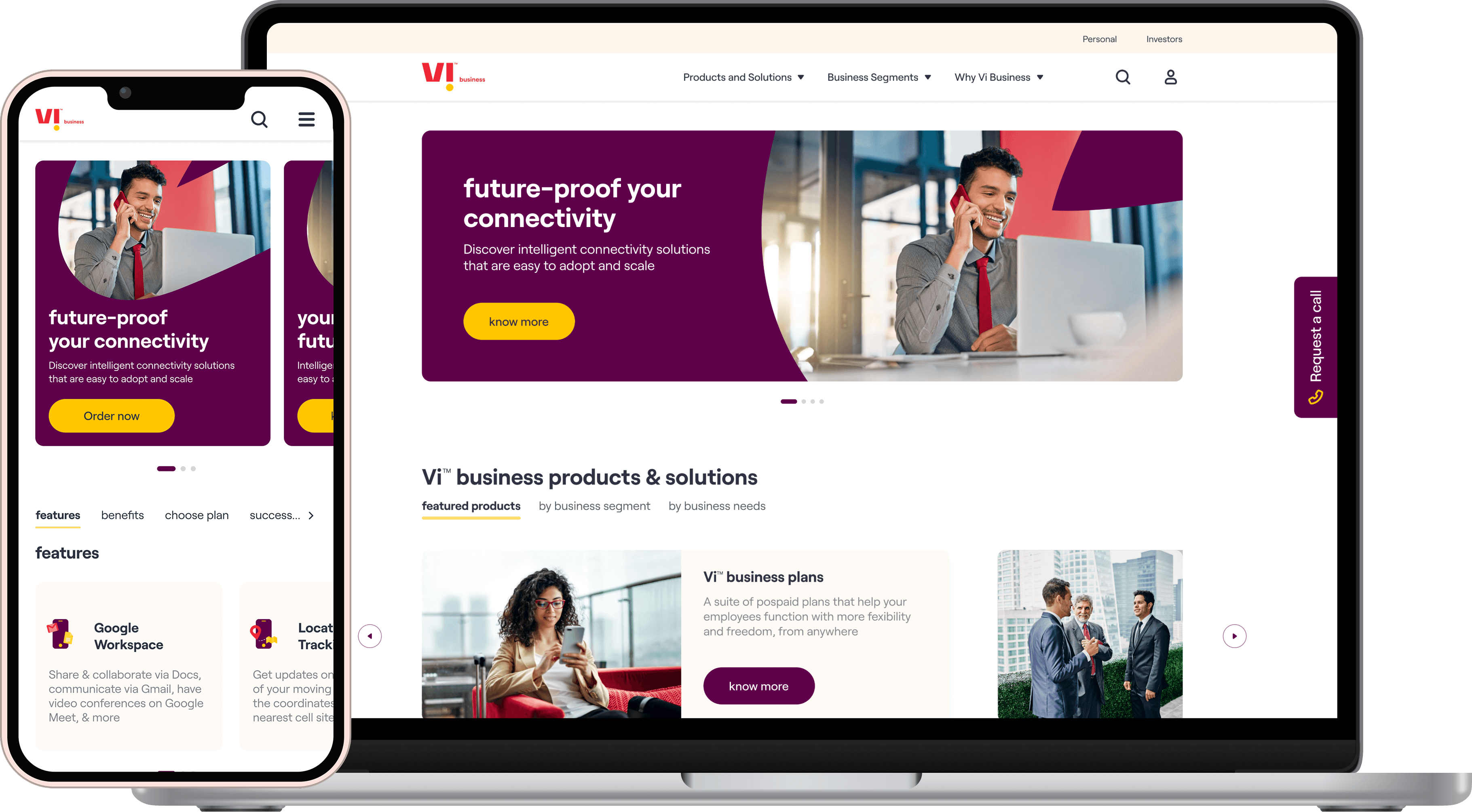 The core experience enables a customer to choose a plan, select the number of connections required & on submission of the request receive an acknowledgement email. The customer’s needs are then fulfilled by Vi Business team.