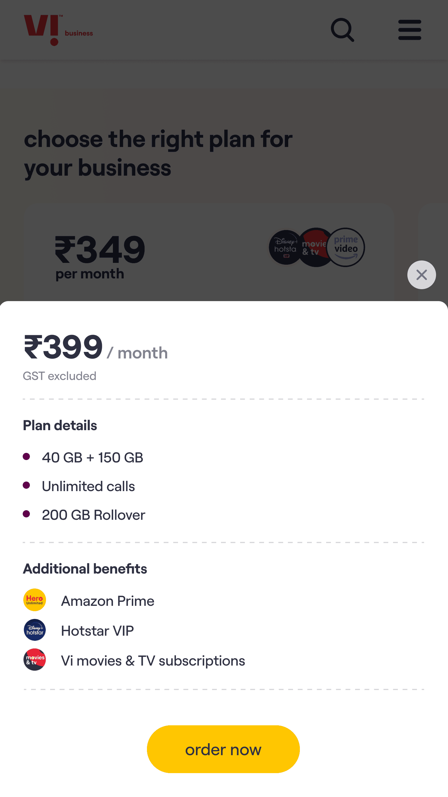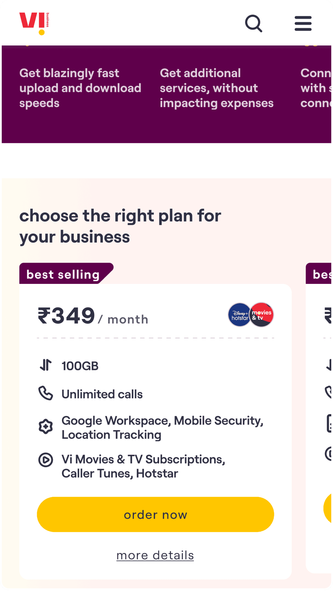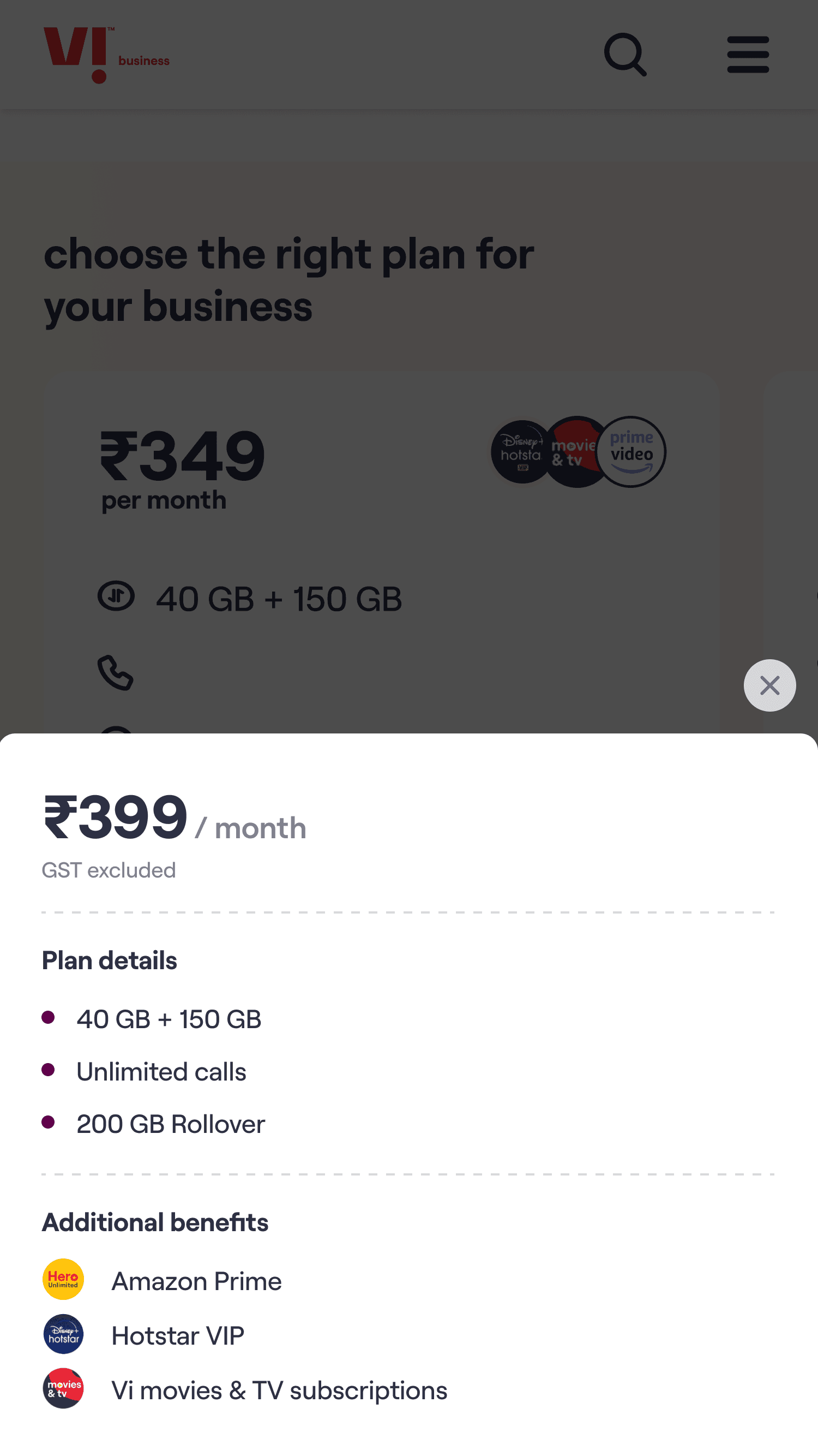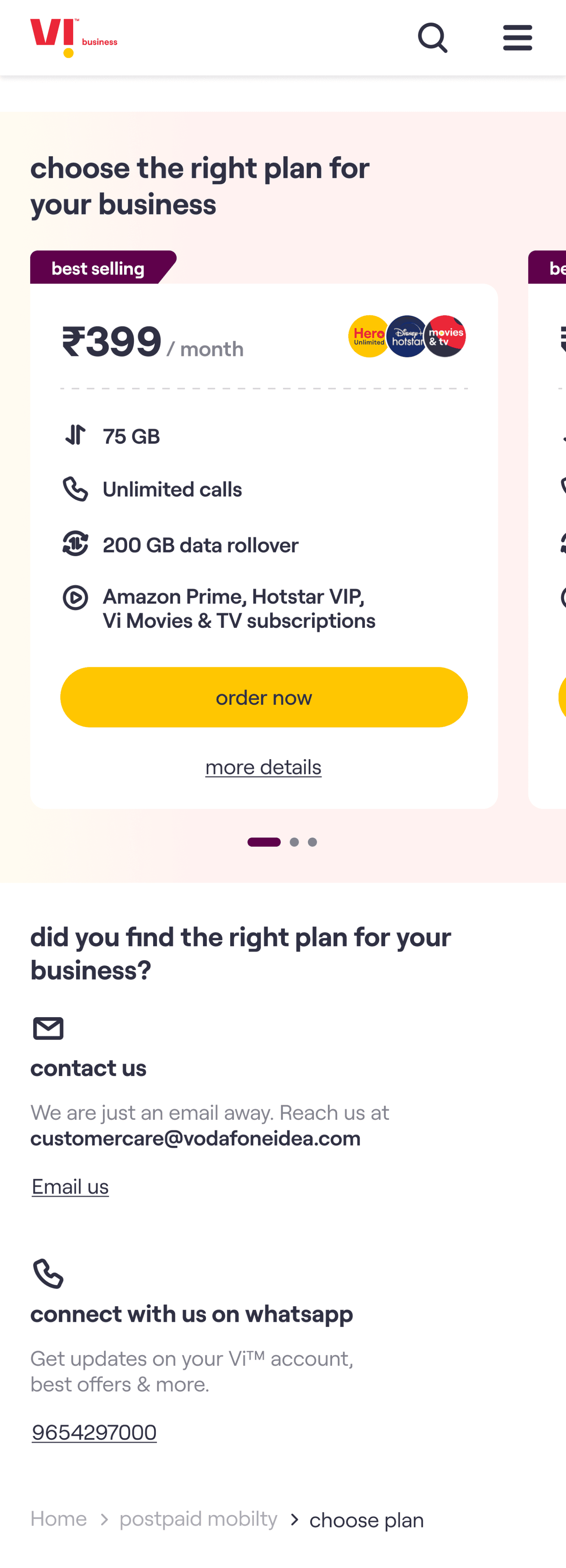 Vi Business website streamlines the purchase process, helping customers compare plans, make informed decisions and buy postpaid plans with ease.